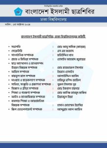 বাংলাদেশ ইসলামী ছাত্রশিবিরের ঢাকা বিশ্ববিদ্যালয় (ঢাবি) শাখার কমিটি প্রকাশ করা হয়েছে। বুধবার (২ অক্টোবর) দুপুরে এই কমিটি প্রকাশ করা হয়।