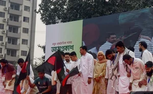 শুক্রবার (২৮ ফেব্রুয়ারি) রাজধানীর মানিক মিয়া অ্যাভিনিউতে নতুন রাজনৈতিক দল জাতীয় নাগরিক কমিটির আত্মপ্রকাশ উপলক্ষ্যে এক অনুষ্ঠানের আয়োজন করা হয়। আর এই অনুষ্ঠান মঞ্চে অংশ নেয় বৈষম্যবিরোধী আন্দোলনের নেতারা। যদি এই মঞ্চে কোনও চেয়ার নেই।