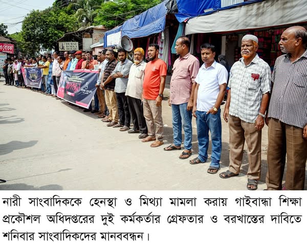 গাইবান্ধা প্রেসক্লাবের মানববন্ধনে সাংবাদিকদের আল্টিমেটাম গাইবান্ধা শিক্ষা প্রকৌশল অধিদপ্তরের দুই কর্মকর্তাকে গ্রেফতার ও বরখাস্তের দাবি