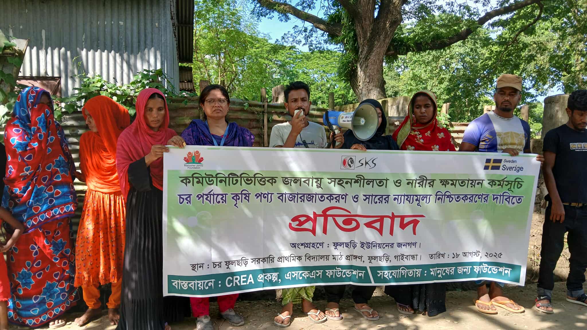 ফুলছড়িতে চর পর্যায়ে কৃষি পণ্য বাজারজাতকরণ ও সারের ন্যায্যমূল্য নিশ্চিতকরণের দাবিতে প্রতিবাদ কর্মসূচি