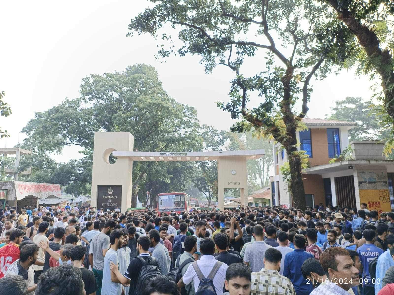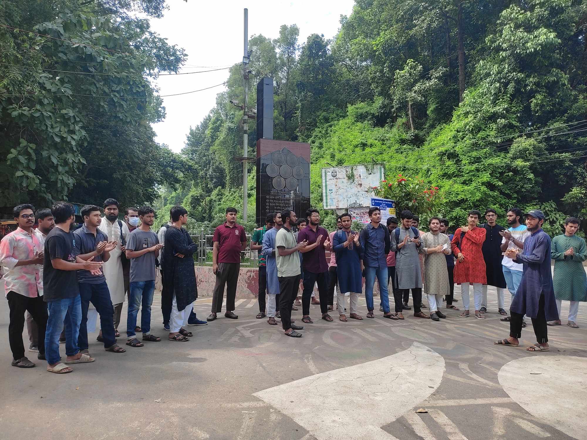 ছাত্রলীগ-যুবলীগের হামলা ও শিক্ষার্থীদের আহতের প্রতিবাদে চবিতে বিক্ষোভ সমাবেশ