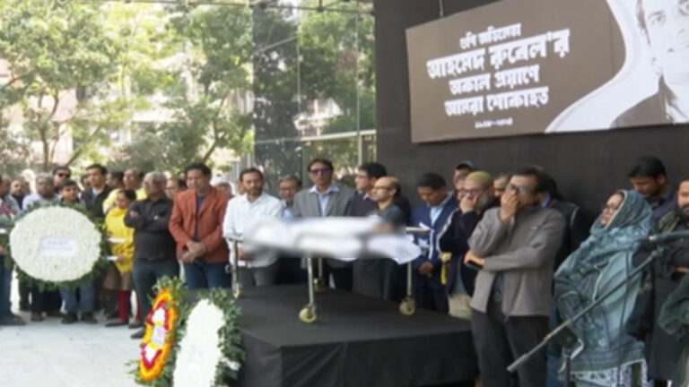 রাজধানীর সেগুনবাগিচায় অবস্থিত বাংলাদেশ শিল্পকলা একাডেমি প্রাঙ্গণে পৌঁছেছে অভিনেতা আহমেদ রুবেলের মরদেহ। বৃহস্পতিবার (৮ ফেব্রুয়ারি) সকাল সাড়ে ১০টার দিকে রুবেলের