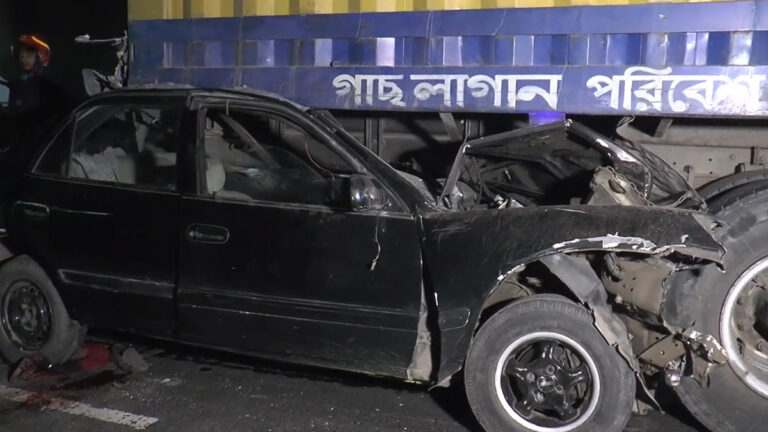 টাঙ্গাইলে কাভার্ডভ্যানে প্রাইভেটকারের ধাক্কা, ২ যাত্রী নিহত।