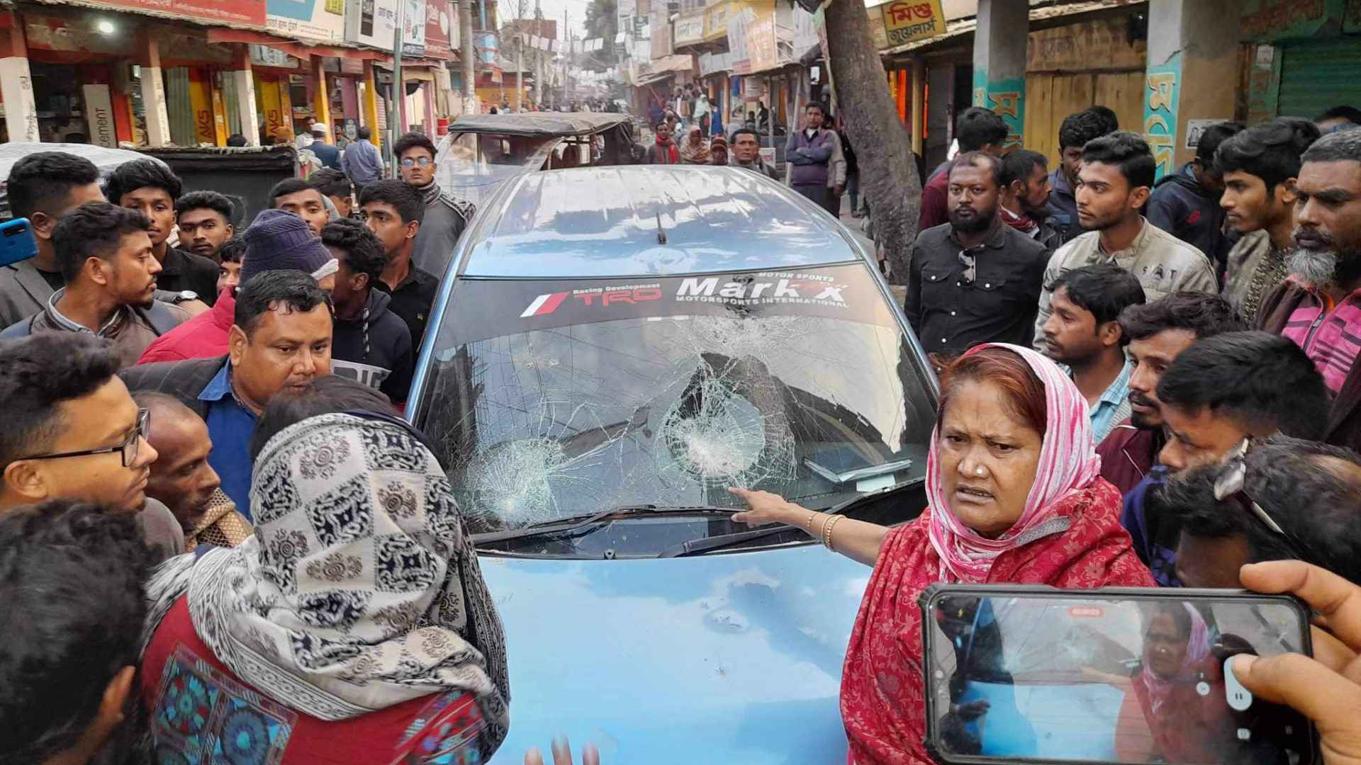 গাইবান্ধা-৩ (সাদুল্লাপুর-পলাশবাড়ী) আসনের নৌকার প্রার্থী ও বাংলাদেশ কৃষক লীগ কেন্দ্রীয় কমিটির সাধারণ সম্পাদক উম্মে কুলছুম স্মৃতির গাড়ি ভাঙচুর করার