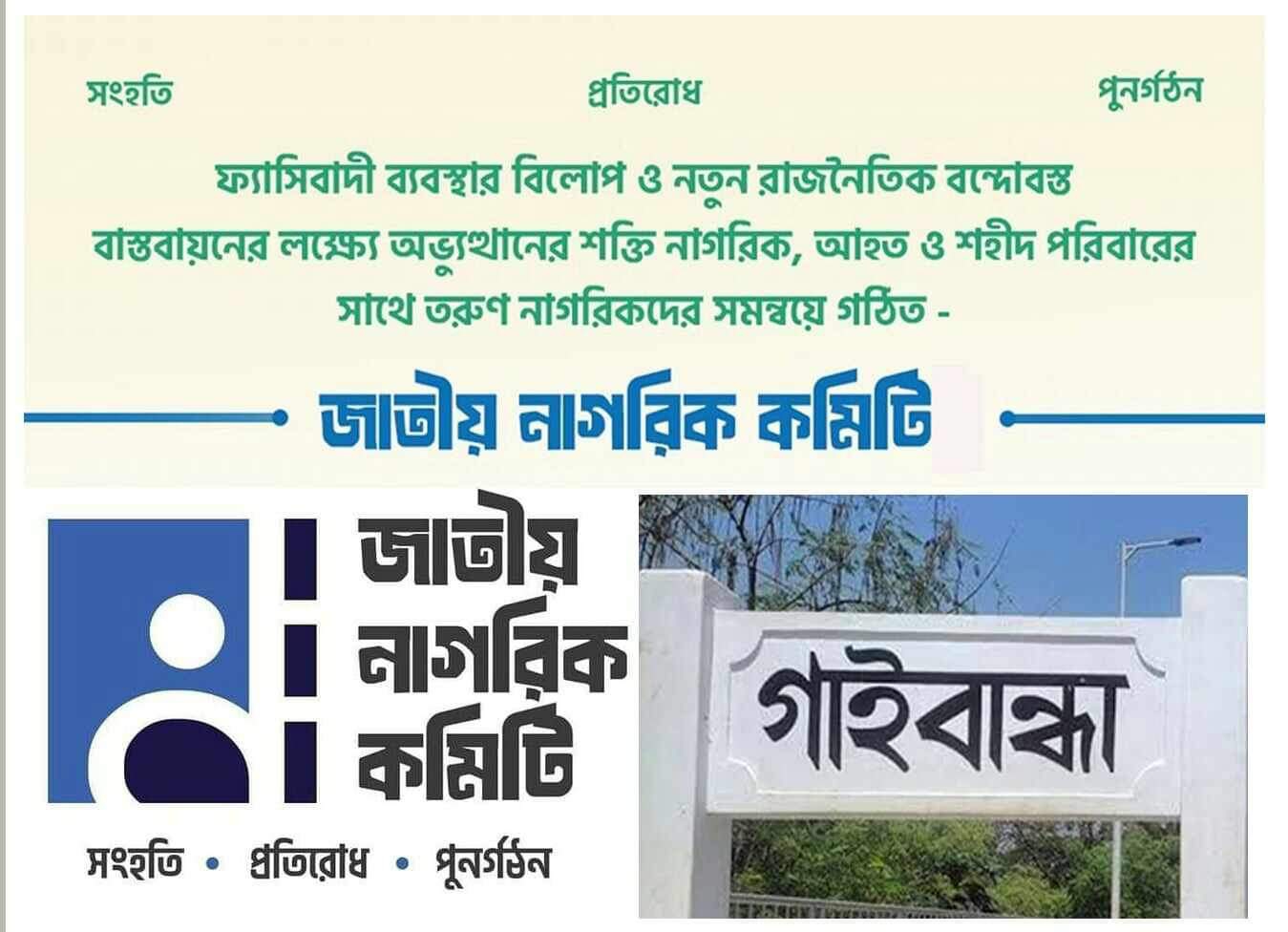 ফ্যাসিবাদ ব্যবস্থার বিলোপ ও নতুন রাজনৈতিক বন্দোবস্তের লক্ষ্যে তরুণ নাগরিকদের সমন্বয়ে গঠিত জাতীয় নাগরিক কমিটি গাইবান্ধার সাত উপজেলায় সদস্য সংগ্রহ