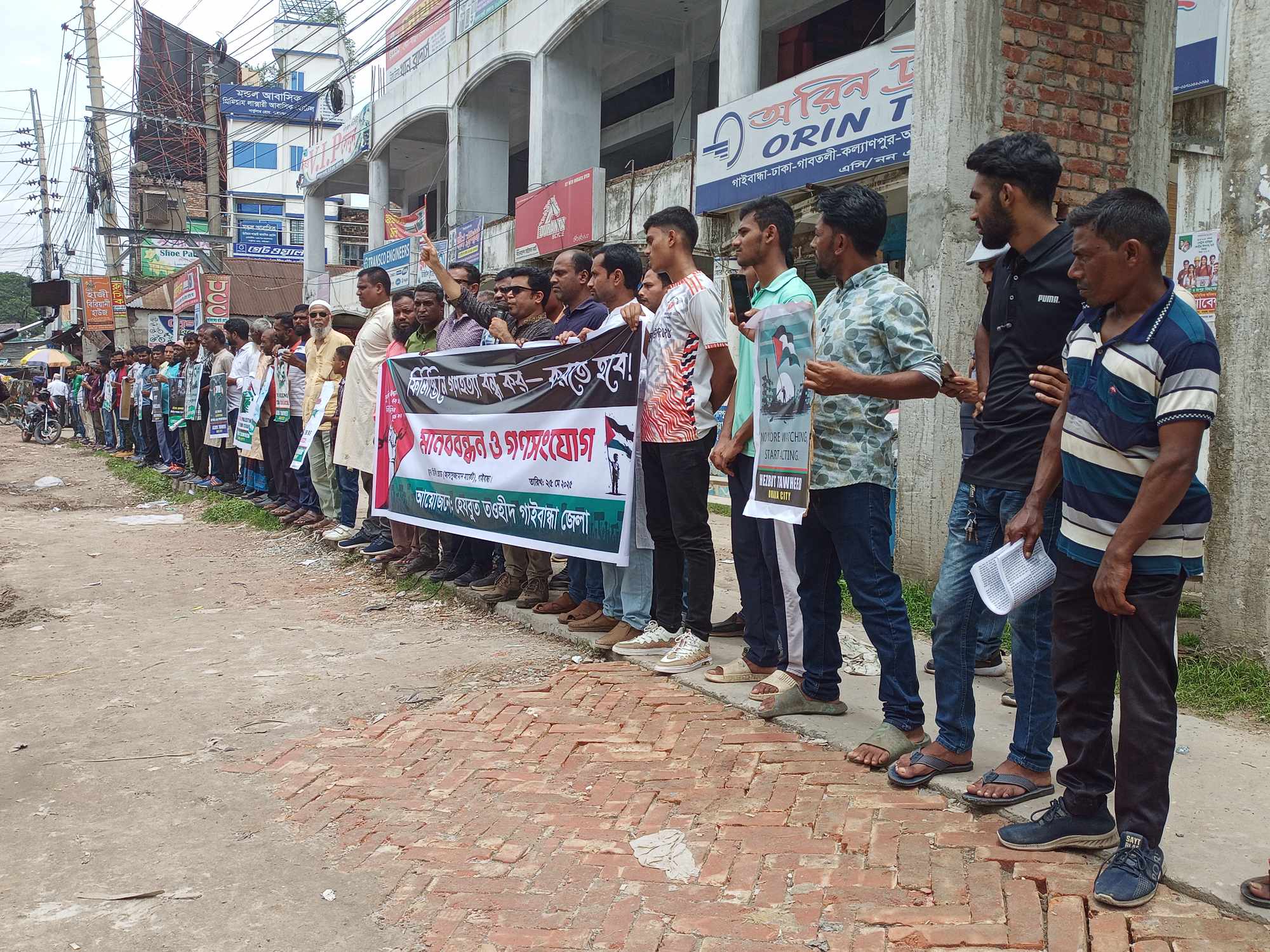 ফিলিস্তিনের গাজায় ইসরায়েলিদের গণহত্যার প্রতিবাদে হেযবুত তাওহীদের মানববন্ধন ও গণ সংযোগ অনুষ্ঠিত হয়েছে। আজ রবিবার সকাল ১০টায় গাইবান্ধা ডি