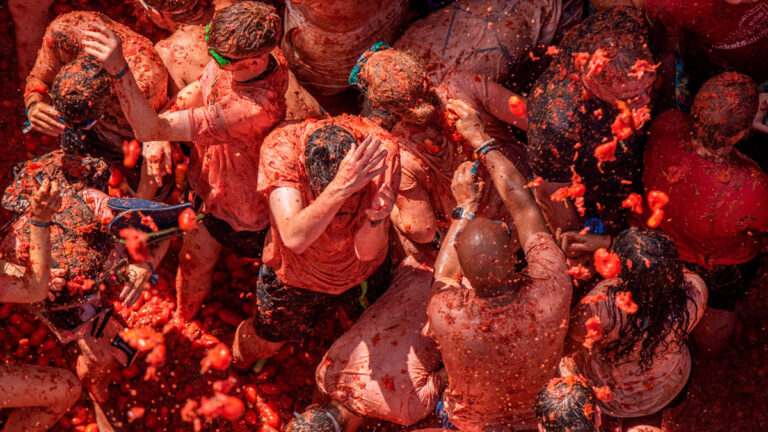 প্রতি বছরের মতো এবারও স্পেনে উদযাপিত হলো ঐতিহ্যবাহী টমাটিনা উৎসব। উদযাপনকারীদের সাদা পোশাক রক্তিম হলো টকটকে লাল রং এ। স্পেনের