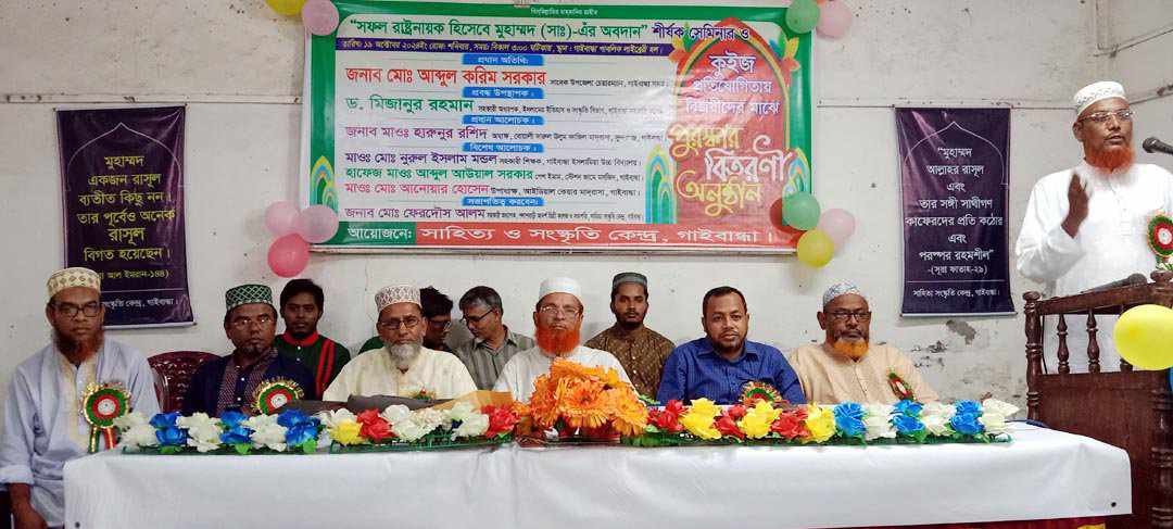 রাষ্ট্রনায়ক হিসেবে মুহাম্মদ (সা:) এর অবদান’ শীর্ষক গাইবান্ধায় সেমিনার ও কুইজ প্রতিযোগিতা অনুষ্ঠিত