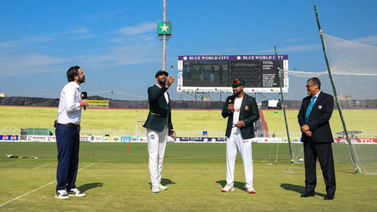 টানা বৃষ্টিতে রাওয়ালপিন্ডিতে পাকিস্তানে-বাংলাদেশ সিরিজের দ্বিতীয় টেস্টের প্রথম দিনের খেলা পরিত্যক্ত ঘোষণা করা হয়েছে। আজ শুক্রবার (৩০ আগস্ট) সিরিজের