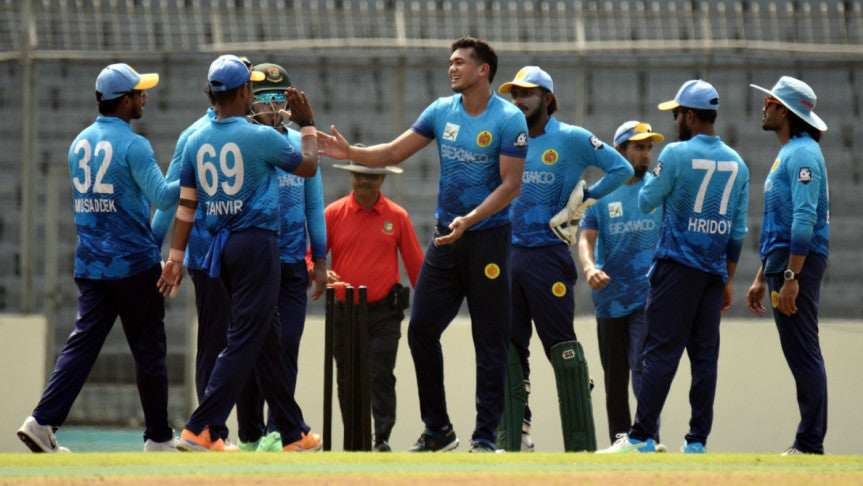 ঢাকা প্রিমিয়ার লিগে আরও একবার গতির ঝলক দেখালেন আবাহনী লিমিটেডের বোলাররা। শরিফুল ইসলাম ও তাসকিন আহমেদরা মিলে ধসিয়ে দিলেন শেখ